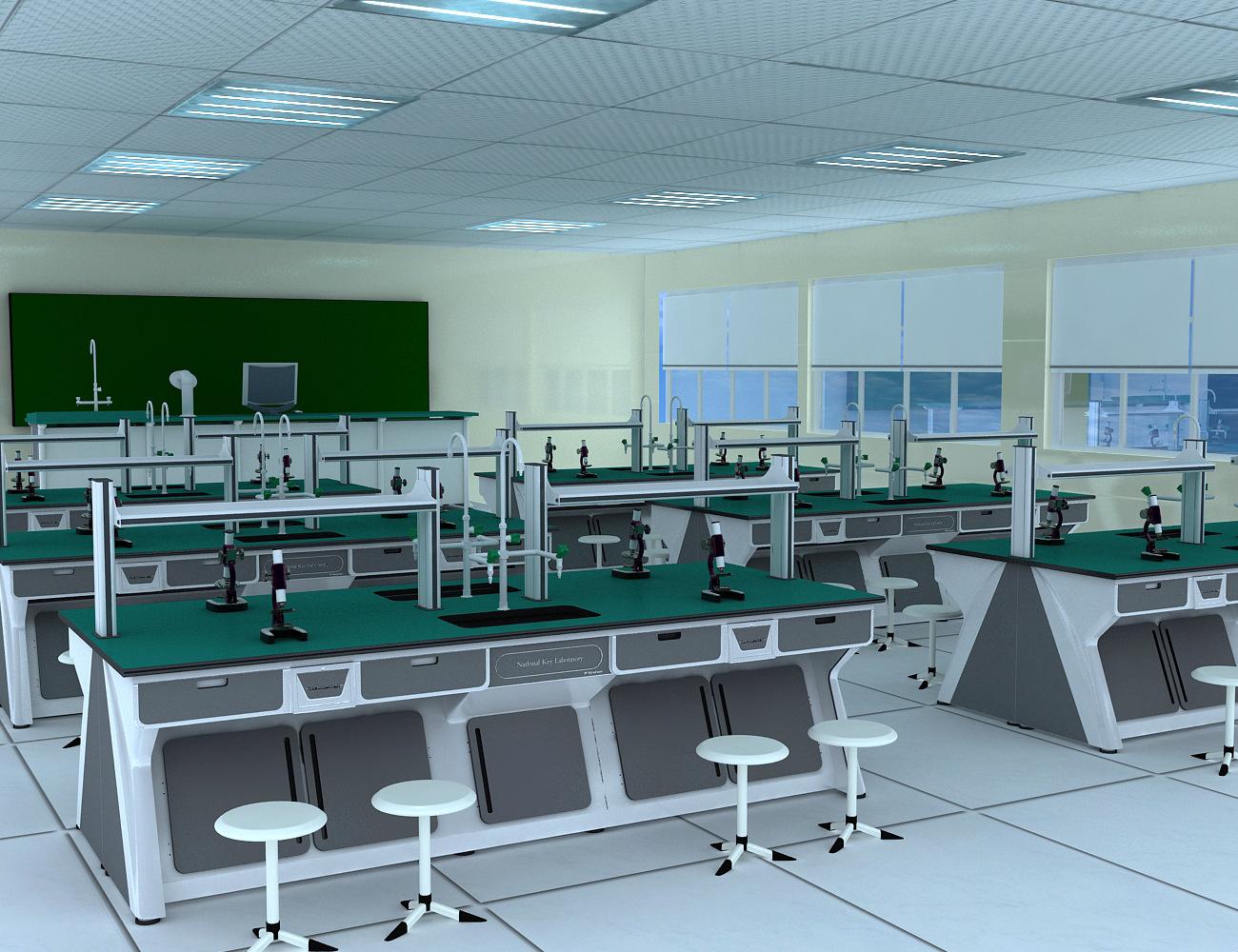 化驗室的家具包括實驗臺、設(shè)備臺、天平臺、高溫臺、通風(fēng)柜、藥品柜、洗滌盆等。實驗臺結(jié)構(gòu)一般為鋼木結(jié)構(gòu),家具臺面要求耐磨、耐酸堿腐蝕。實驗室的化驗臺、柜之間的間距應(yīng)符合人體工程學(xué)要求,并滿足操作要求。放置分析儀器的設(shè)備臺一般離墻布置,留出600~1000mm的維修空間。中央化驗臺、設(shè)備臺根據(jù)需要設(shè)置插座和水管引入。