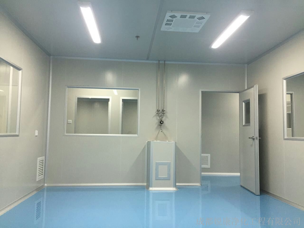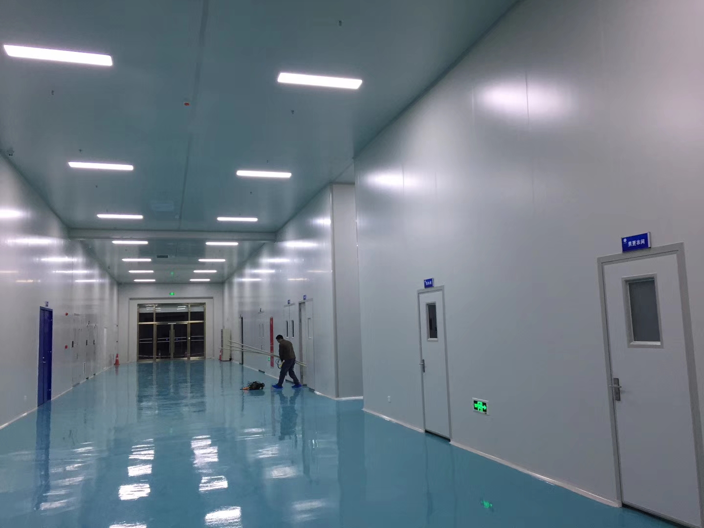 2、更衣室、風(fēng)淋室、凈化間是車間凈化系統(tǒng)的三個(gè)基本組成部分。風(fēng)淋室是進(jìn)出潔凈區(qū)劃的通道,用噴出的高速潔凈氣流,有效迅速清除人體所帶的塵埃及細(xì)菌。凈化間采用夾層彩鋼板隔離空間或墻壁,上部彩鋼天花吊頂,地板用環(huán)氧樹(shù)脂鋪成。